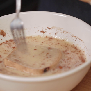 3 tbsp Maple Syrup In a wide bowl, add all the eggs together and beat till mixed thoroughly. Add all the bread slices into mix and allow the bread to fill with egg mixture.