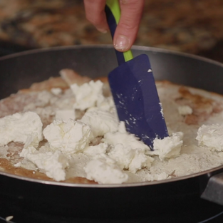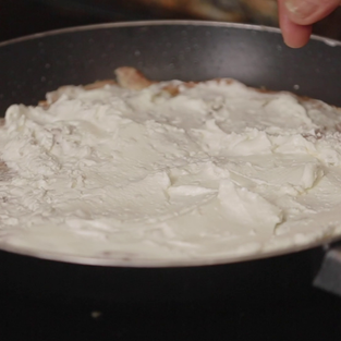 Once the top seems cooked, flip to the other side, add sliced cheese of your choice and sprinkle the zaatar on top all around. Turn off heat and allow the cheese to melt. Open, cut and serve on plate with a banana, strawberries, watermelon slices or papaya and drizzle maple syrup on top.